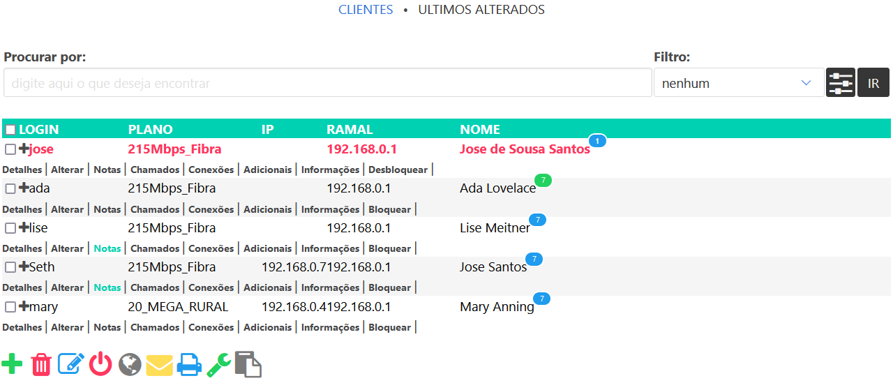 Nesta página, você pode visualizar todos os clientes que tiveram os dados modificados recentemente na ordem crescente