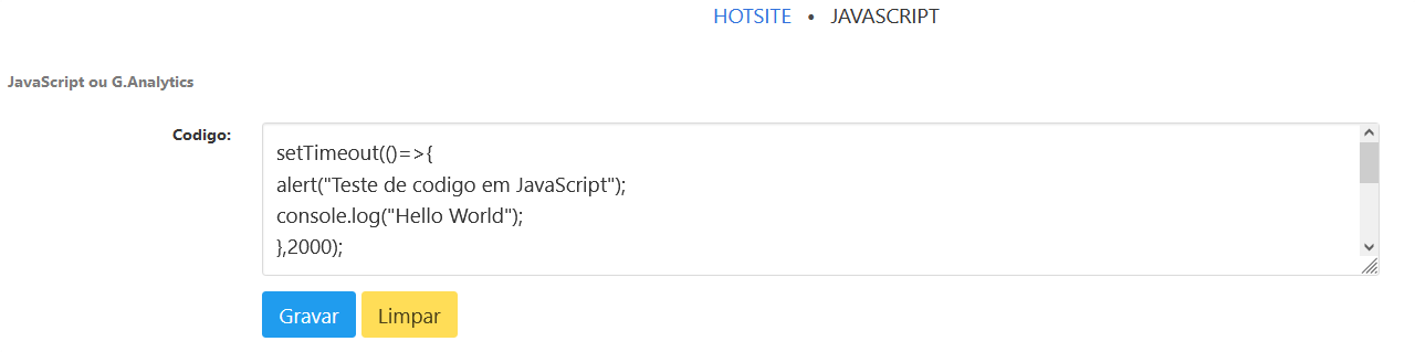 Nesta ferramenta voce pode esta inserindo codigo JavaScript JavaScript para ser executada no hotsite.