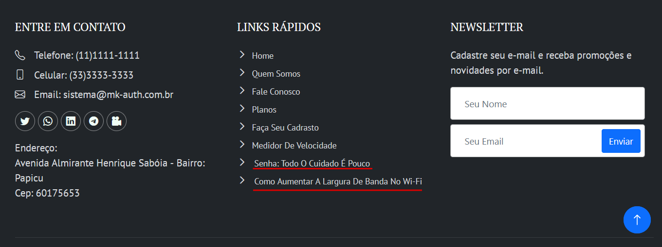 Nesta página, você pode colocar links que apareceram no fim do hotsite