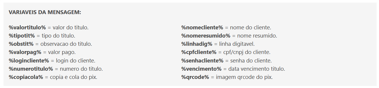 Nesta ferramenta você pode configurar mensagens de E-mails. Você pode inserir as variáveis abaixo apresentadas e tornar o seu sistema automatizado. Algumas mensagens de e-mail também têm a opção de anexar um PDF, caso você deseje enviar o PDF automaticamente.