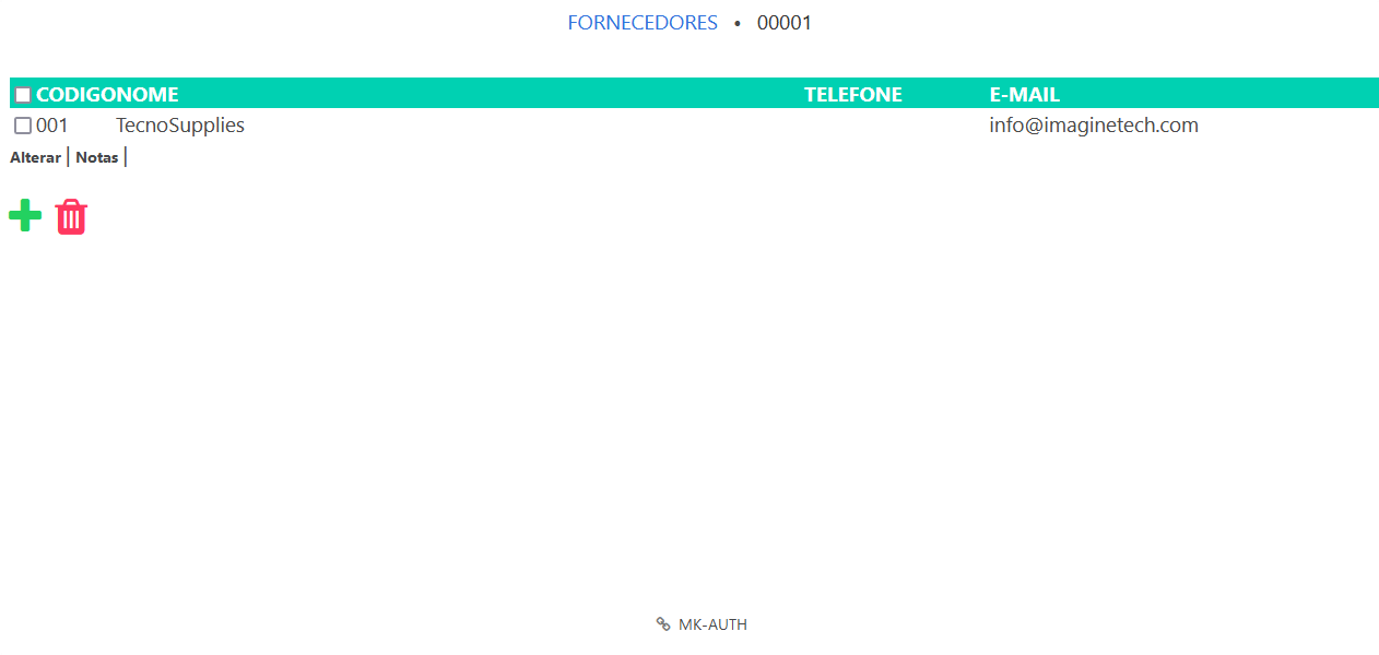 Nessa página você irá cadastrar os fornecedores de seu provedor. Assim terá sempre os contatos em mãos, sem se preocupar em procurar em agendas, anotações e bloquinhos de nota.