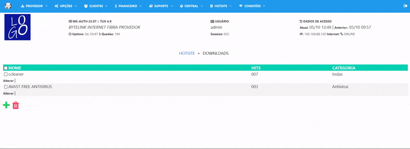 Nesta página, você pode estar enviando os arquivos ou a URL para que os clientes possam baixar no hotsite ou central.