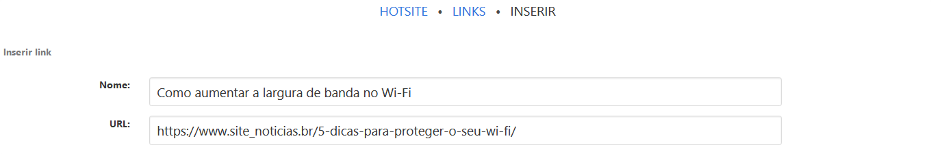 Nesta página você tem três opções, nome do site, endereço do link e se o link vai abrir na mesma janela ou em uma nova, após adicionar os dados do link salve clicando em “enviar”