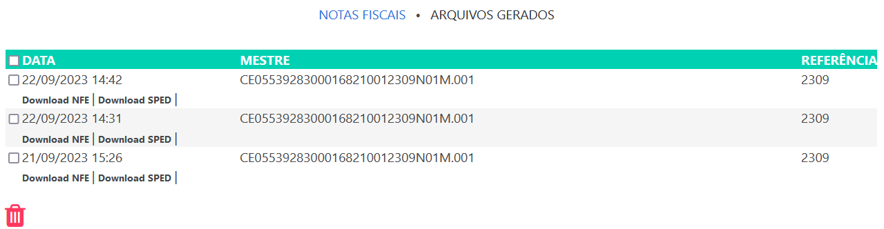 No menu Nota Fiscal procure por > Arquivos gerados.