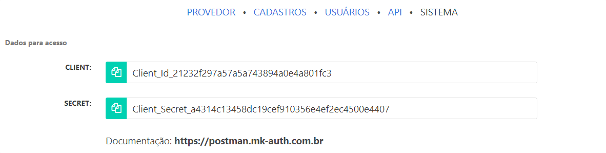 CADASTROS procure por > Controle de usuarios. Escolha usuario que deseja e clique em API
