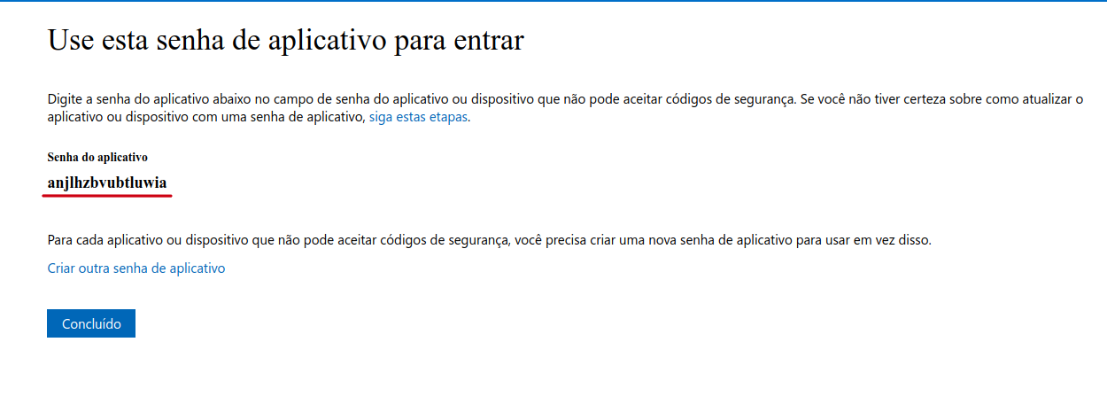 Agora, copie a senha gerada e clique no botão 'Concluído'