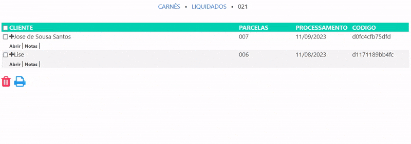 Nesta página você pode conferir todos os carnês liquidados, ou seja: todos aqueles carnês que já foram pagos.