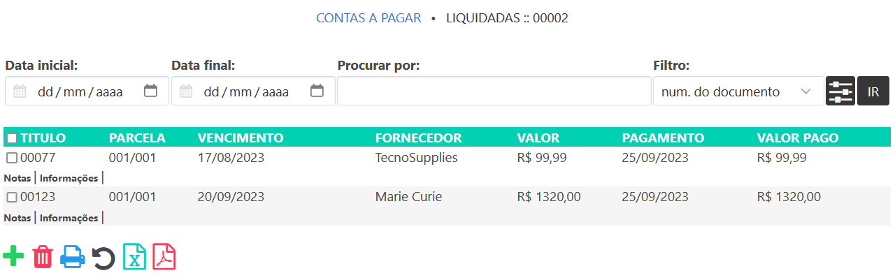 Contas liquidadas
