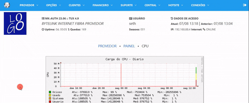 Você pode verificar o uso da CPU do seu mk-auth.