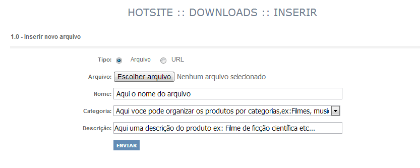 1-Nesta página você coloca arquivos como imagens, músicas, jogos, filmes etc… Para seus clientes baixarem no HOTSITE…. . ..