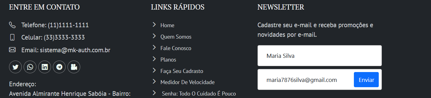 Para o envio do newsletter, é necessário configurar os servidores externos para o envio de e-mail. Saiba mais sobre o assunto neste link Servidor de e-mail.