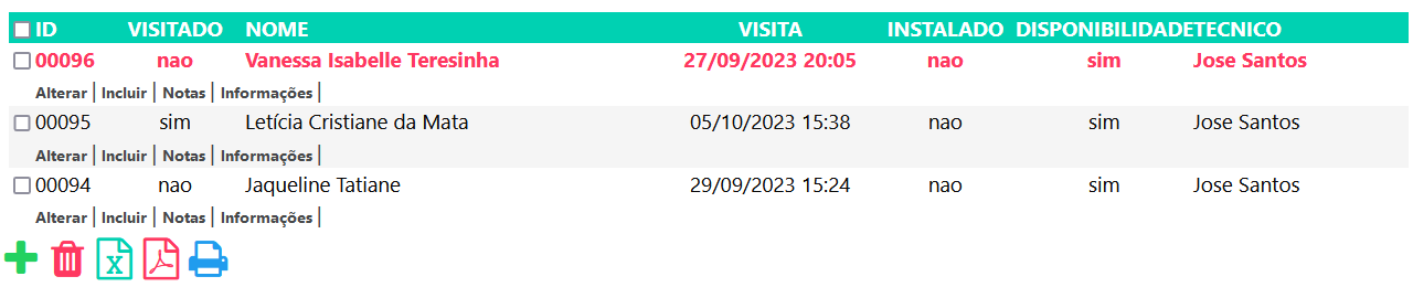 - Alterar: Pode realizar alterações na instalação, como a data de visita e outras opções.