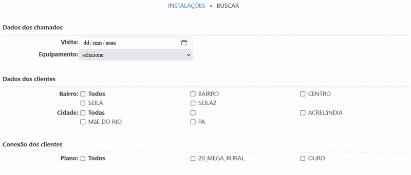 Se não selecionar nenhuma opção, como mostrado na imagem abaixo, a busca resultará em mostrar todas as instalações em aberto.