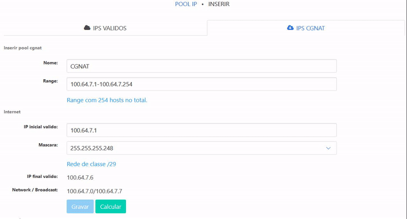 Escolha entre os menus IPS VALIDOS ou IPS CGNAT