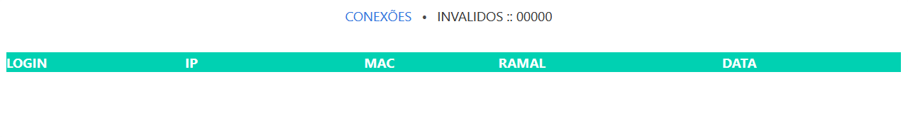 Nesta ferramenta, você pode acessar uma lista de todos os clientes com acessos inválidos, visualizando informações essenciais, como login, hora de início, hora de término, duração da conexão, tráfego e endereço IP. Isso oferece uma visão abrangente da atividade da rede em tempo real, permitindo um gerenciamento mais eficaz e a capacidade de fornecer suporte personalizado aos clientes.